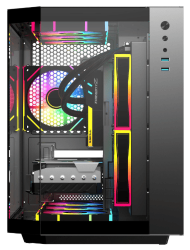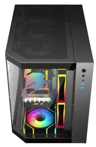 - Water cooling ready - Top can fit up to 360mm, MB side support up to 280mm liquid cooler and the case can accommodate up to 9 fans (3x ARGB fan pre-installed), providing excellent cooling performance and ARGB lighting effects.